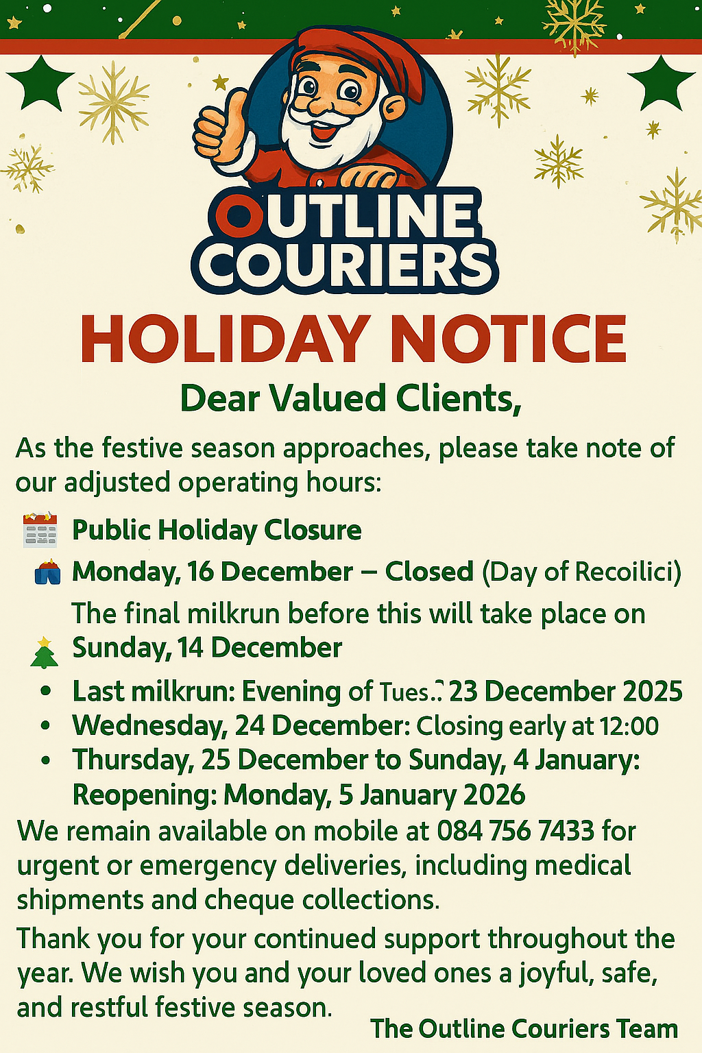 Outline Couriers offers comprehensive 3PL delivery solutions across the Northern and Western Cape. With 90% of towns delivered on the same-day of receiving and 10% as next day dawn deliver at no additional cost to the client.